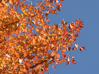 やっぱり紅葉は青空にこそ映えますね。そのあでやかなトウカエデもそろそろ散り始めです。