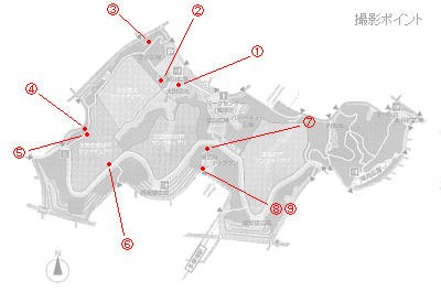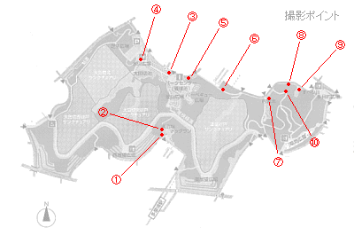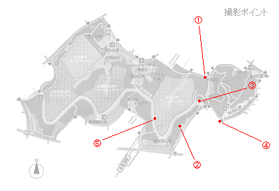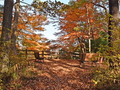 北展望台。訪れる人も少ない静かなスポットです。東展望広場と西展望広場は南に向いていて、眼前には相模野台地が広がっています。この台地は相模川に向かって下る河岸段丘になっているので、丹沢山地まで遮るもののない大展望が得られます。一方、この北展望台は北に向いていて、谷戸が細かく入り込んだ多摩丘陵とその上に広がっている市街地を見渡す格好になります。丘陵の上面はここと大差ない高さなので、あまり広々とした風景にはなっていません。