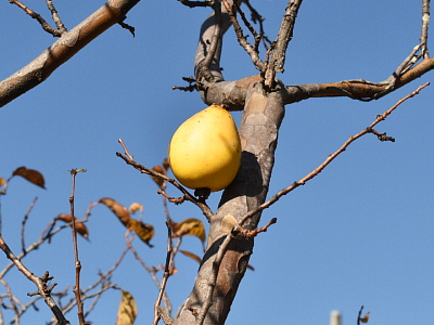 毎年いつのまにかなくなっているカリンの実。今年は木の近くに「花や実を取らないで」というプレートが設置されているからか、まだ何個か実が残っていました。