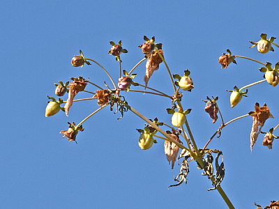 これはドライフラワーになったオトコエシの花序ですね。翼に縁どられた果実が落ちずにたくさん残っています。