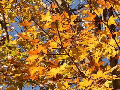 イタヤカエデの黄葉。陽を透かして輝いていますね。庇のように枝を伸ばし葉を展開させるイタヤカエデ。その様子を、雨を遮る板屋根に例えたのが名の由来だそうです。