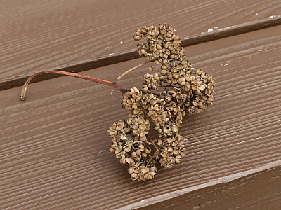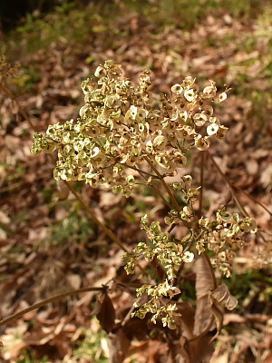 これはドライフラワーになったオトコエシの花序ですね。翼に縁どられた果実が落ちずにたくさん残っています。
