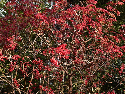 大量に実ったガマズミ。深い赤色が見事です。冬場の鳥の食糧備蓄は安心のようです。