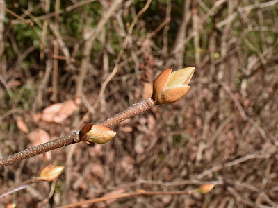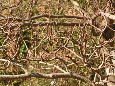 トサミズキの冬芽。早くもほころび始めているのは今年が暖冬だから?いや単なる個体差でしょうね。