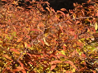 ユキヤナギの紅葉。春には純白になり、冬には煉瓦色に色づく。これまであまり注目していませんでした。