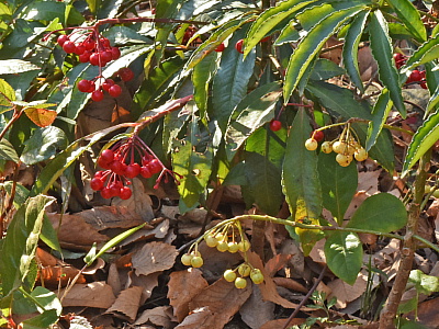 野草見本園へ。マンリョウとシロミノマンリョウが並んでいました。紅白でお目出たいです。来年も良い年でありますように。