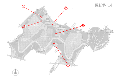 北展望台。訪れる人も少ない静かなスポットです。東展望広場と西展望広場は南に向いていて、眼前には相模野台地が広がっています。この台地は相模川に向かって下る河岸段丘になっているので、丹沢山地まで遮るもののない大展望が得られます。一方、この北展望台は北に向いていて、谷戸が細かく入り込んだ多摩丘陵とその上に広がっている市街地を見渡す格好になります。丘陵の上面はここと大差ない高さなので、あまり広々とした風景にはなっていません。