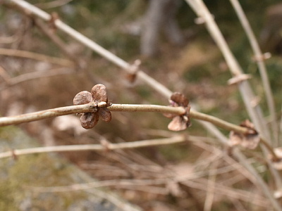 ハコネウツギの刮ハ。こちらも開裂するタイプで、種子に翼があることからも風に飛ばすタイプであることが分かります。