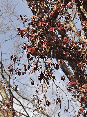 テカテカに紅葉しているテイカカズラ。誰に愛でられることもないツル植物ですが、深い色合いをyamanekoは評価しています。ちなみに白い花も可憐です。