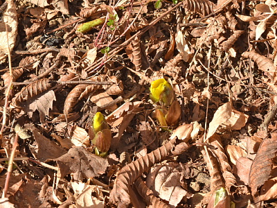 野草見本園へ。フクジュソウの蕾が伸び始めていました。暦ではまさに大寒の只中ですが、春の気配を感じます。