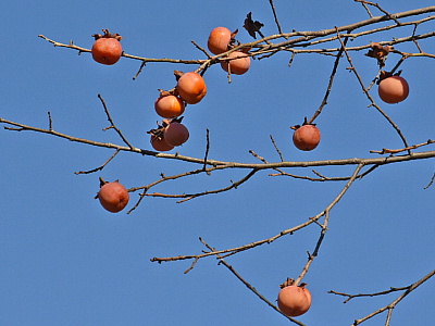 残り柿。田舎では柿は取り尽くさず、鳥の冬場の餌として残しておくのが自然への礼儀とされていました。昨今熊の出る地域ではそうもいかないでしょうね。