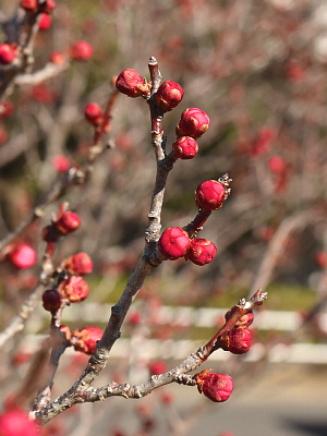 紅梅が開花の準備を進めていました。こういうのを見ると春も遠くはないと思ったりします。まだ寒の内ですが。
