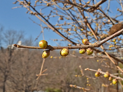 ソシンロウバイの蕾もぷっくりしていました。たくさんの蕾が開花を待っていて、これからしばらくは見る人を楽しませてくれるでしょうね。