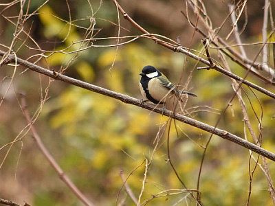 シジュウカラ。こちらも特徴である胸のネクタイ模様がよく分かります。黒いネクタイということは法事でもあったか?