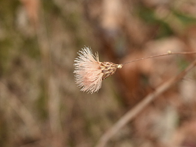 コウヤボウキはキク科で、たくさんの筒状花で頭花を構成しています。その筒状花が実らせた一つ一つの果実の先端に多数の毛が付いていて、それが寄り集まって写真の状態になっています。